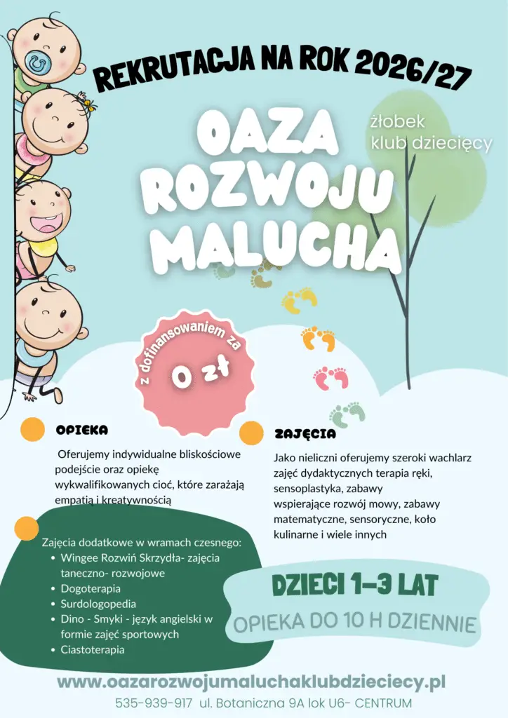 Rekrutacja do klubu dziecięcego Oaza Rozwoju Malucha w Białymstoku trwa cały rok.